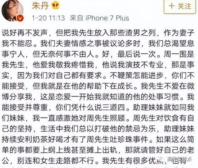 对于朱丹和周一围的婚姻,外界有很多的质疑声,尤其是说朱丹在婚姻中太过于卑微了。