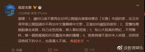 首先文雅发朋友圈,在朋友圈里暗示张靓颖离婚并祝她开始新生活。虽然朋友圈只是特定范围内能见到的,但是这个朋友圈居然被放到了微博上。