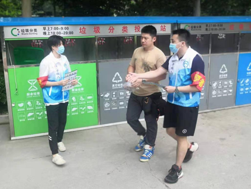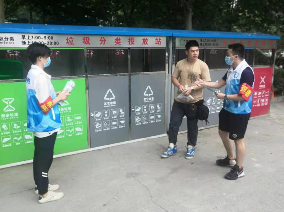 在经过对垃圾分类的学习之后,我也迎来了自己的第一次值守站岗。这天我早早地来到了垃圾分类垃圾桶旁,我的任务是为社区居民讲解垃圾分类的基本知识,倡导居民进行垃圾分类。我们采用发放宣传手册和进行垃圾分类小游戏的形式对社区居民进行讲解。出乎我意料的是很多社区居民都被我们的垃圾分类小游戏所吸引,其中不仅有小孩子和他们的父母,还有社区中的大爷大妈、出来买菜的年轻人。我细心地为居民们进行讲解、指导他们进行垃圾分类小游戏。