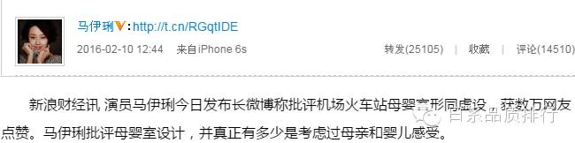 其实早在今年的2月份,马伊琍就发了长微博讲述了自己和家人在机场内的尴尬遭遇,并批判国内的母婴室形同虚设。