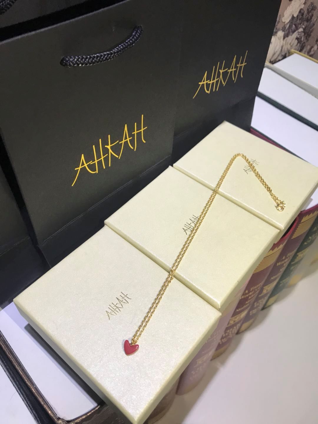 AHKAH一个来自日本岛的品牌 完完全全靠口碑做起来的牌子 没有打过任何一条广告 最初的时候在日本赠送给大小艺人佩戴走秀传到中国网红界 名媛 小仙女们都已经被这条小红心给深深的迷住了它的别名叫做 日本的蒂芙尼