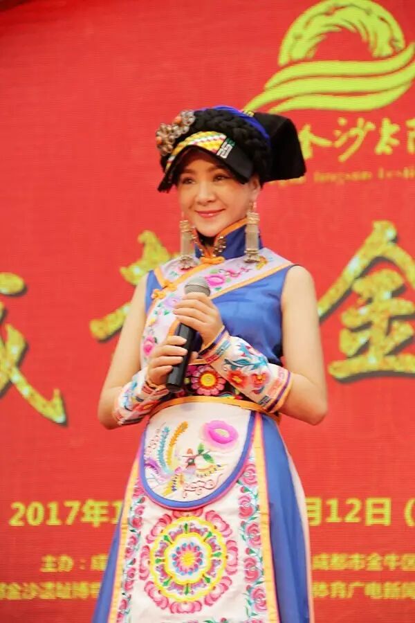 身着白、黑、红、蓝四色传统服饰、腰束绣花围裙与飘带、头戴青布瓦片头帕、佩戴精致银饰的尔玛依娜,作为神秘嘉宾,与埃及艳后共同为观众送上了新春的祝福。