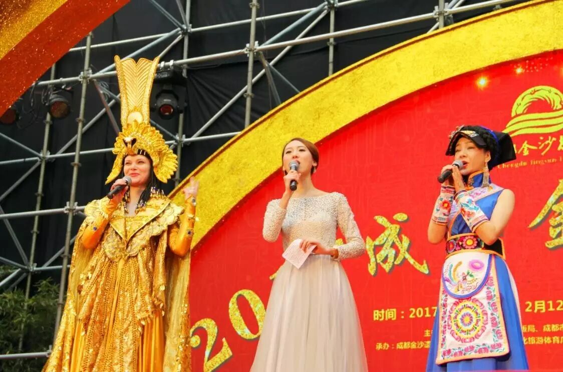 在太阳节的现场,两大世界文明的美丽使者带领现场观众,分别用羌语和埃及语,喊出“新年快乐”的祝福。当普通话、羌语和埃及语三种不同语言的“新年快乐”回荡在金沙太阳节的园区,东西方文明的交汇绽放出更加灿烂的光芒。