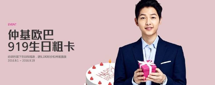 8月29日,宋仲基代言的东元金枪鱼品牌发布了和宋仲基一起进行中秋节促销的活动信息。东元官方Facebook在29日表示:为了迎接中秋佳节的到来,将在下个月的28日,以购买了东元金枪鱼礼物套装的顾客为对象,进行和演员宋仲基面对面的活动。到中秋节当天为止,想要参与活动的顾客可在卖场或者东元官网上购买“东元金枪鱼套装”或“东元金枪鱼企划礼盒”,并在东元官网促销活动页面输入兑奖号码即可。东元将通过抽签选出100名幸运儿给予参与活动的机会。中奖名单以及具体的活动日程可在下个月23日通过东元官网确认。