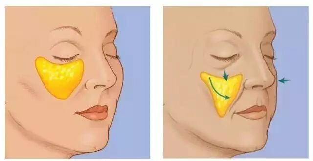 这两种因素的共同作用使整个苹果肌的体积变小,位置下移,而苹果肌体积变小和位置下移又会使鼻唇沟加深,从而表现出衰老。苹果肌下垂是亚洲女性老化的典型特征。