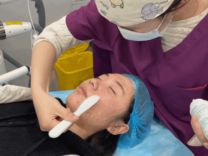 护士小姐姐先给我脸上敷了一层厚厚的凝胶以防烫伤,凝胶冰冰凉凉的,抹在脸上的时候还是挺舒服的。