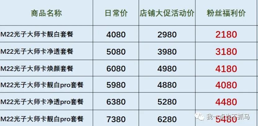 目前办理M22光子大师卡的话,套餐价会比平常去店里做要划算很多。像靓白套餐、净白套餐等价格要比日常价便宜1100元,多做几次就相当于免费做一次光子嫩肤。