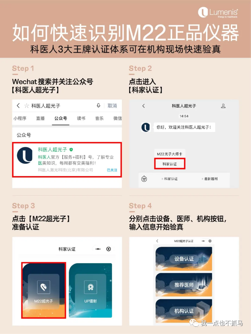 最后大家可以关注一下服务号“科医人超光子”,去做光子嫩肤的时候可以直接扫码验证机器真伪,而且科医人每月免费抽送超光子福利,名额有限,姐妹们冲起来。