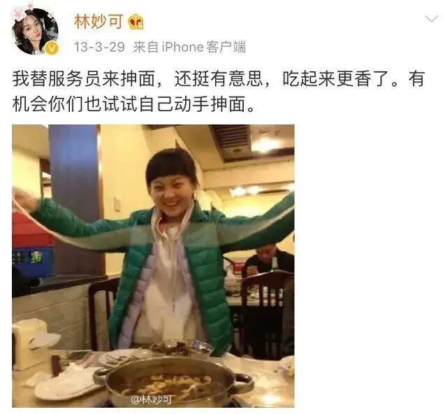早在2013年,林妙可在微博上发布了一张普通的抻面照片,却引来了无数语带双关且具淫秽色彩的留言,不堪入目。