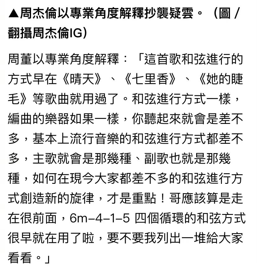 “这首歌和弦进行的方式,我早就用过了,哥应该是走在很前面!”