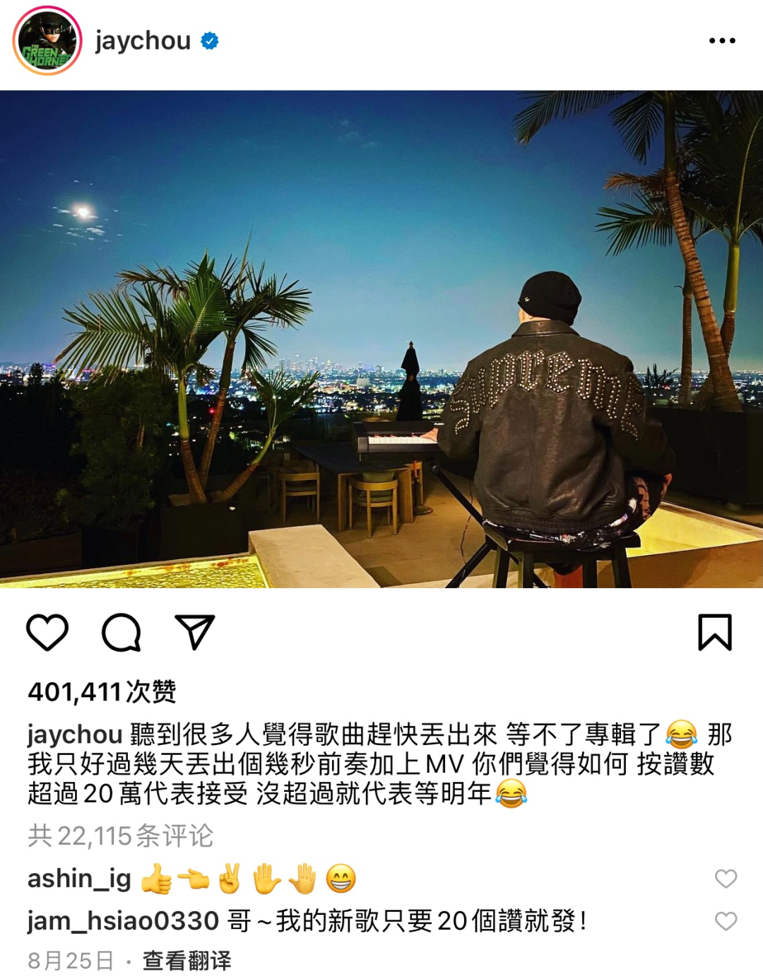 总之,经过歌迷们的共同努力,很快就集够了20万赞,周杰伦也如约发布了前奏和MV。