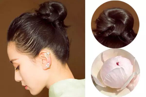 与丸子头相比,更有蓬松度,多了层次感,好似由一片片花瓣包裹而成的美丽花朵,因此命名为“花瓣头”。
