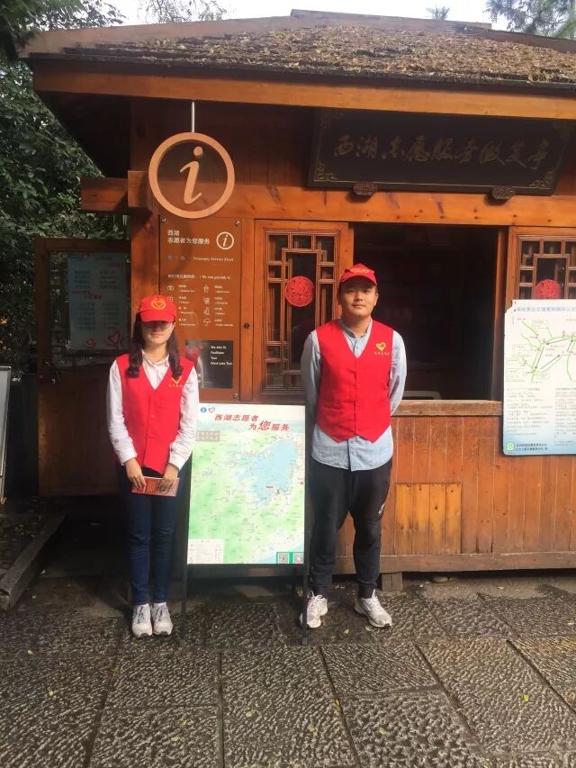 “雷峰夕照”微笑亭志愿服务活动。志愿者前往西湖“雷峰夕照”微笑亭值岗,为游客提供线路指引、旅游咨询等便民活动。