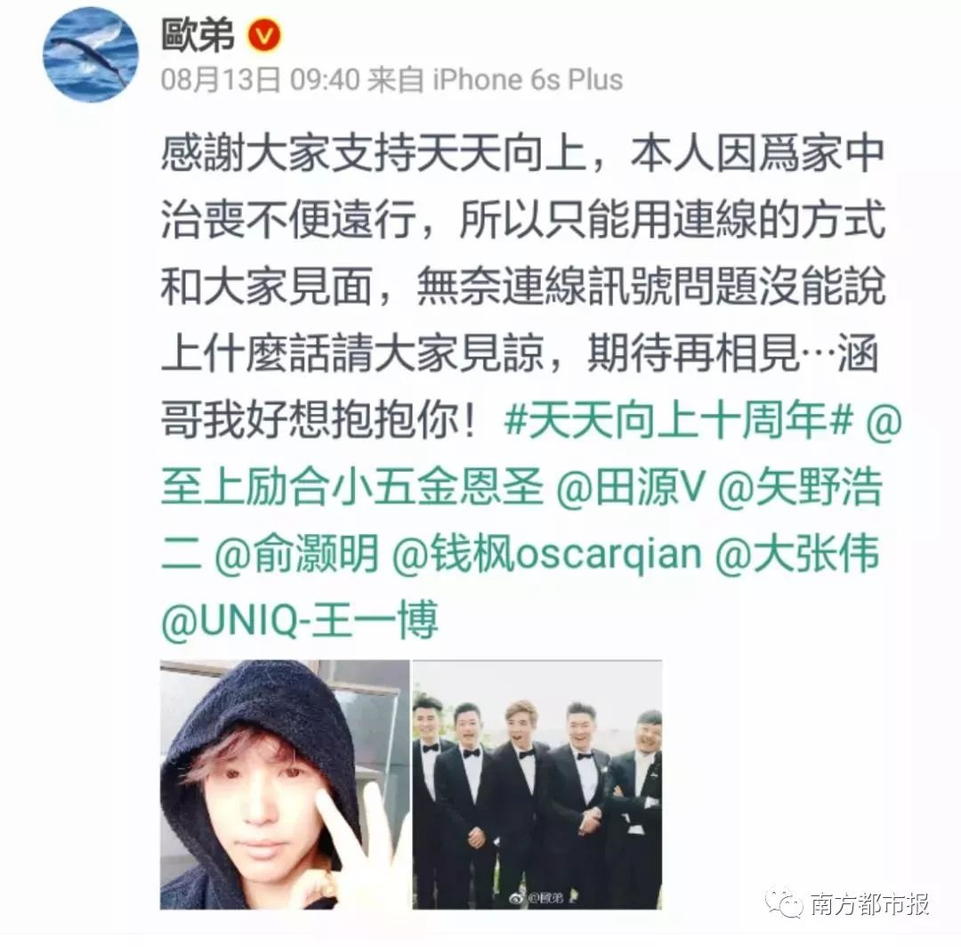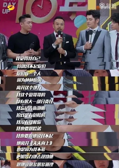 “我忘记告诉灏明拍戏是有危险的,我没有提醒你;我也要跟欧弟说对不起,他离开天天向上,也是因为我不够更加努力地去规劝他、跟他说很多很多道理……