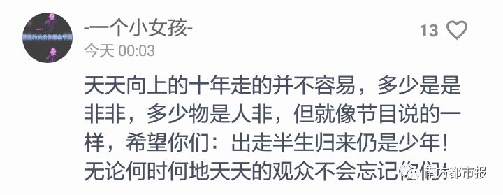 “在这个地方,我其实特别想对老的天天兄弟每一个人说,我觉得我自己特别对不起你们。你们每一个人因为种种原因离开这个地方,我都有责任,我这个做哥哥的都有很大一部分责任。