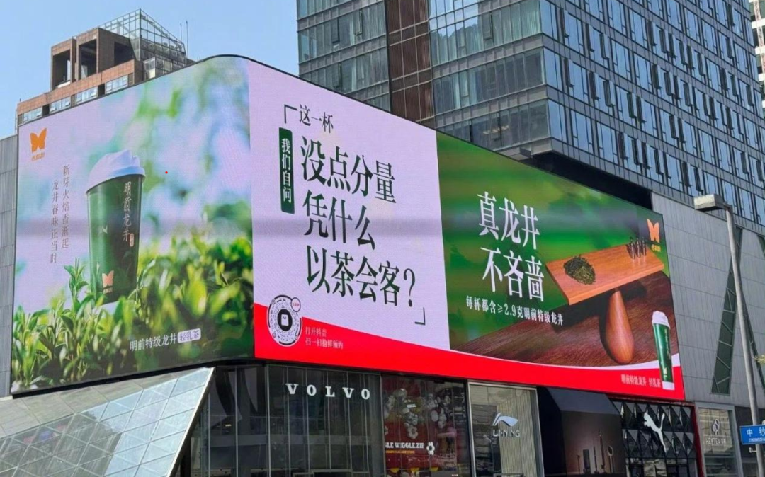 今年年初,香飘飘还打造了一场非常出圈的事件。他们将广告投放到春熙路,似乎有意挑战现制茶饮,其中广告词“没点分量,凭什么以茶会客”“看不见茶叶,装什么真茶”,被用户认为是“贴脸开大”霸王茶姬,很多网友都表示香飘飘真的太“敢”了。