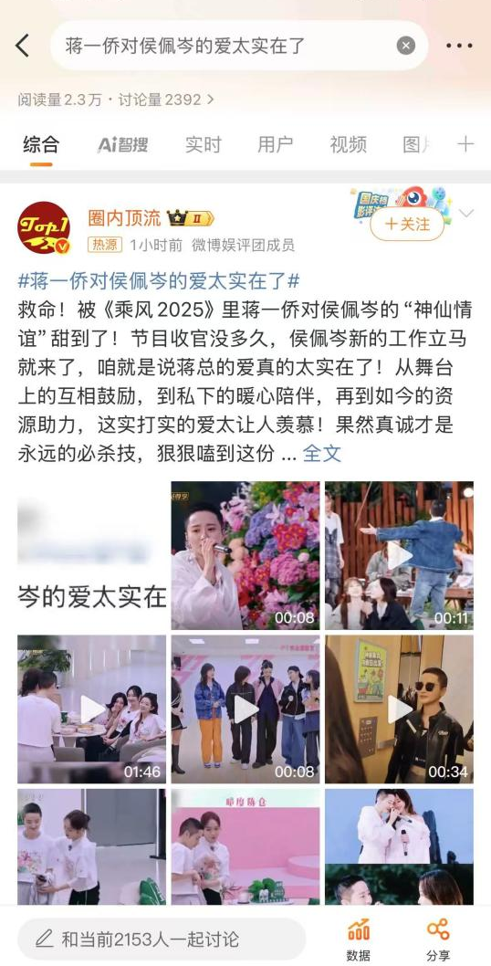 早在二公的时候,蒋一侨就曾被侯佩岑收于麾下,两人还共同演绎了经典歌曲《思念是一种病》,每个眼神每句歌词都非常甜。喜欢在综艺里找糖的观众还磕过蒋一侨和侯佩岑,两人互动还被网友戏称为“台湾把妹王”与“宠姐狂魔”的双向奔赴。