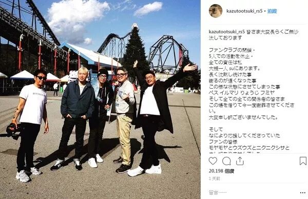 夫妻婚变1年后,上个月SU在自己的社交网络上承认了不伦恋,并宣布了乐队正式停止活动,他表示:“所有的责任都在我,大槻一人……长久以来一直保持沉默,到现在才向大家表达歉意,发生这样的事情,请让我在此表达歉意,真的非常抱歉,尤其是一直支持我们的粉丝,真的很对不起。”