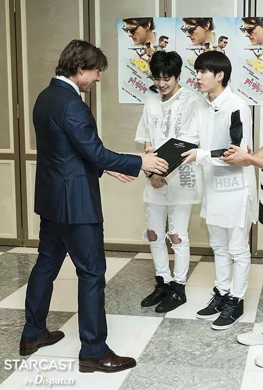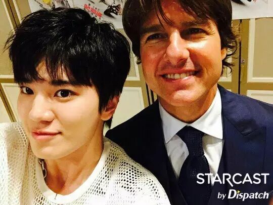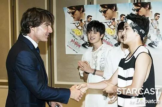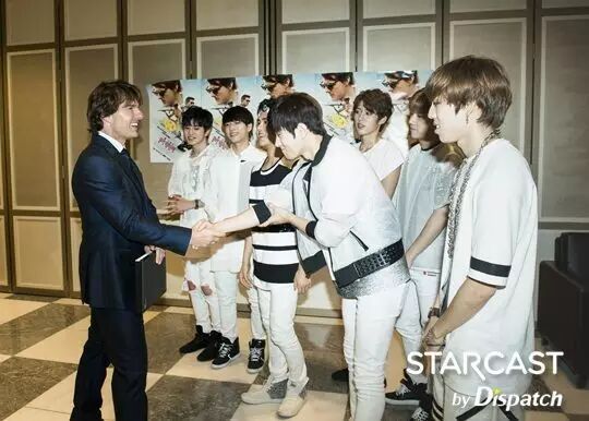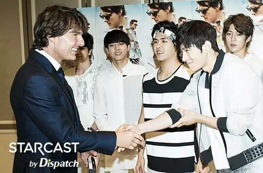 这是亲切的汤姆大叔. 汤姆•克鲁斯。 "Nice To Meet U" 任 P ▼ I.N.F.I.N.I.T.E? INFINITE 这是百分百的真实场面,“团体舞偶像”INFINITE和好莱坞明星汤姆•克鲁斯见面了,双方自称是对方的粉丝开心的相互问候。 STARCAST见证了这个历史性的(?)的瞬间,这里是上个月30日举办的“Mission Impossible:Rogue Nation(碟中谍5)”的宣传现场,当时真的是一件不可完成的任务。 威风堂堂的架势,气场爆棚,INFINITE是唯一一个受到克鲁斯邀请的偶像。 当天INFINITE受邀进行了红毯开场演出,展现了新曲《BAD》强有力的表演,尤其是团体舞蹈成为了当天的压轴。 "在看吗, 汤姆" "开场~Possible" "我们, Not BAD" 事实上INFINITE另有任务,那就是亲自和克鲁斯见面问候,还为克鲁斯准备了特别签名CD。 二十多岁的男人都会憧憬《碟中谍》中的Ethan Hunt(汤姆•克鲁斯),INFINITE也不例外。 “成员们都是看着《碟中谍》系列长大的,我们是汤姆•克鲁斯的大粉丝,能够在现实中见到他非常荣幸” (INFINITE) "汤姆哥, 等着你" (优贤•L) "自拍练习中" "拍的不错吧?" 终.于.他出现了,已走向世界的INFINITE在汤姆•克鲁斯面前也只不过是个普通的粉丝而已。 “我们一起看了《碟中谍5》,但是在画面中的人物出现在眼前觉得好没真实感,像是做梦似的” (INFINITE) INFINITE将第五张迷你专辑《Reality》作为礼物送给了克鲁斯。 "For You" (优贤) "太棒了" (汤姆•克鲁斯) 不能忘记拍认证合照吧,INFINITE拿出了拍团体照的必备品-自拍棒,7位成员和克鲁斯挤在一起拍了合照。 只有团体照不免觉得有些遗憾,成员们分别站在克鲁斯旁边,这是必须要的两人合照啊。 "我们见到汤姆哥了" "哥,笑一下" (成烈) "等很久了" (东雨) "任务,成功了" (L) "成钟也成功了" “当时很紧张,他出现的瞬间,被他周围的气场镇住了,他开心的笑着欢迎我们,感到很亲切,也想学习他绅士的样子" (INFINITE) 好了! 下面是炫耀的时间? "我要炫耀一下这个人脉" (L) "不过这里是哪儿?" P.S INFINITE和汤姆•克鲁斯的见面就到此为止了。在同一天INFINITE慌忙带着“Dispatch”来到的地方是?准备“世界巡演”的练习室。 ------------------------------------------------------------------- 功能导航: 1.点击右上角分享到朋友圈 2.点击右上角关注:hanguome2day微信公众号,收获每日的韩娱精华资讯 3.搜索"米兔君"或微信号码"mitujun"添加me2day微信个人账号,第一时间在微信获取最新韩娱资讯 4.欢迎投稿至[email protected],与韩国相关的娱乐或生活,内容不限