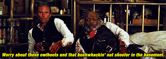 虽说他们难以摆脱恶人的头衔,看着就像一群该死的恶棍在偏远的杂货店里耍尽花招无恶不作的自相残杀,但从片中沃伦捏造的那封《林肯来信》能在傲娇的白人面前扬眉吐气一番,最后在挂掉的恶人和“林肯”的见证下,一黑一白打破身份和种族的界限迎来平息共赴黄泉,将军老头的肩上背负着N条无辜的黑人性命,诱发沃伦反将一军,马尼克斯挺着中弹的身躯推着椅子谈及老爹受人敬仰的一段,似乎其中又夹杂着些正面的情结和人性的闪光,即便他们做了一些法律和道德所不耻的行为举止,有过不堪回首的经历,加上家族、历史所烙下的难以抹去的印迹,但他们也会想着通过做些什么来获得尊严和自我价值认可,即便手段看着十分的狡猾、龌龊和卑劣,撇开自保或利己主义最大化不谈,同时还夹带着“你不仁我便不义”这点合情合理的人性私货和江湖道义,回过头来看沃伦的捏造信和对老头的报复、最后身为新任红岩镇治安官的马尼克斯选择本要送往当地处以绞刑、对他“见死不救”的黛西上西天就是最好的证明。