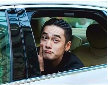 变身搞怪少年的蒋劲夫也是很个性的哦,他的这款黑色的短发将两侧耳朵上方的发丝做了寸头修剪,发顶部分的发丝向后梳理做了几条个性的小脏辫,最后将发丝被梳理成马尾辫,很可爱的造型。