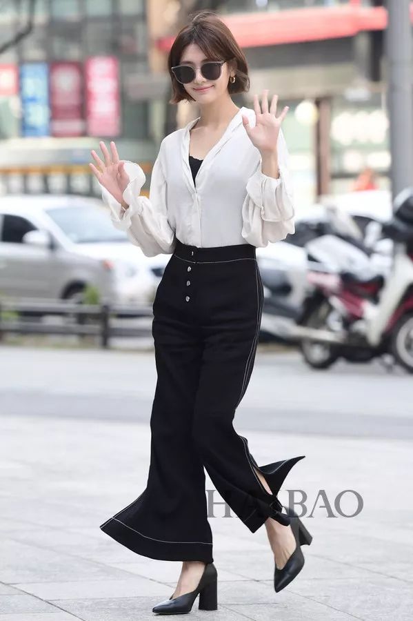 郑素敏剪了短发后整个人气质UP,看上去美得发光,而这身黑白配Look,既简约又有荷叶边、开衩等个性细节,清爽不失时髦,挺适合她的。