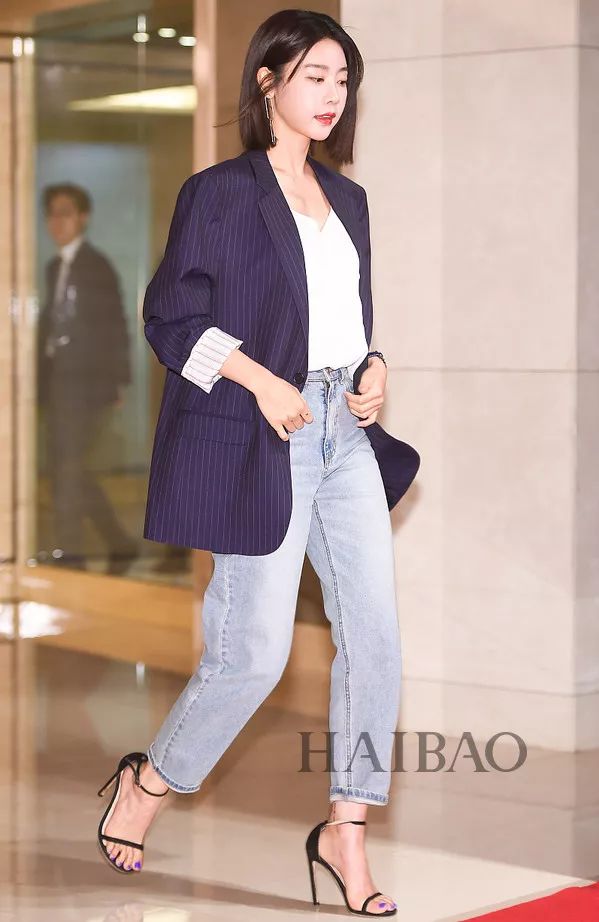 姜素拉有双美腿,西服+短裤Look非常适合她,搭配简约一些,清爽又帅气。