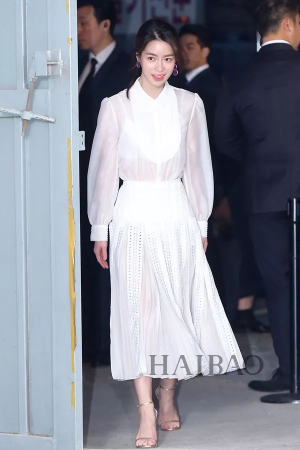 林智妍2018年4月26日身着Fayewoo白色连衣裙现身品牌活动