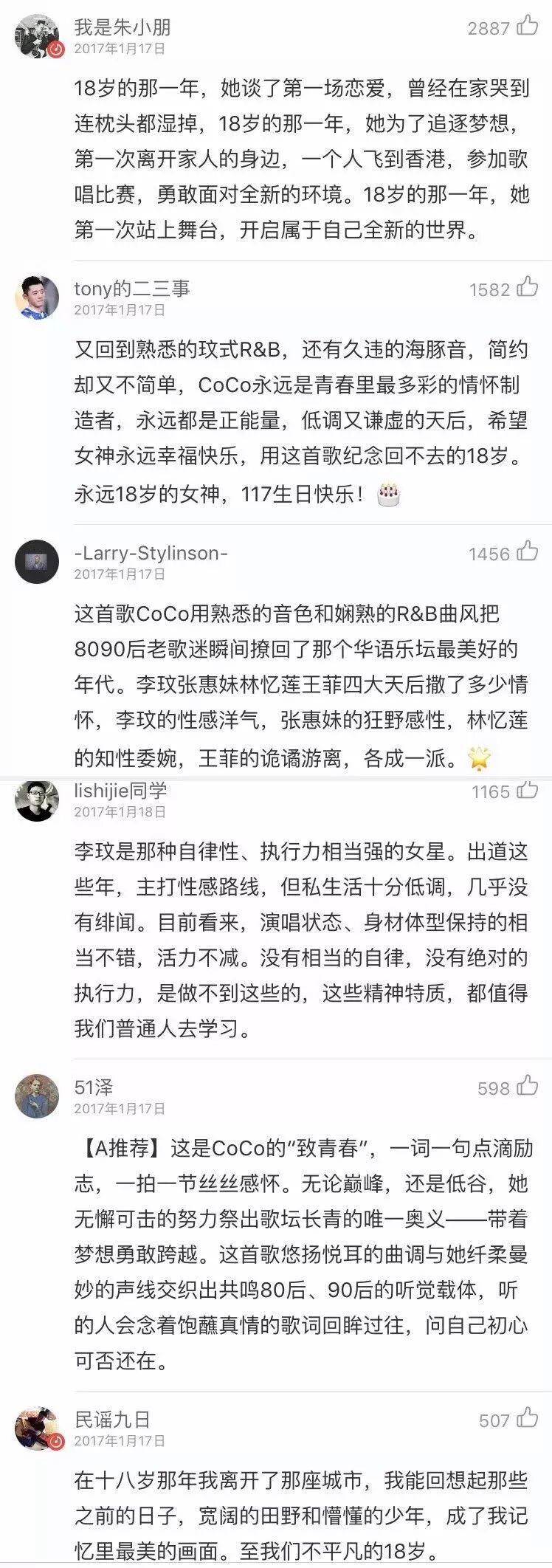 《18》这首歌对于李玟来说,有着特殊的意义,18岁那一年她经历初恋和失恋、那一年她离家追梦、那一年她初登舞台,她把自己的故事唱给大家,也让走过18岁的所有人都能在其中找到共鸣。