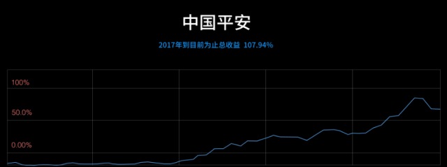 我们再来看一只,中国平安。今年到现在为止涨了107.94%,也是一直在上涨。