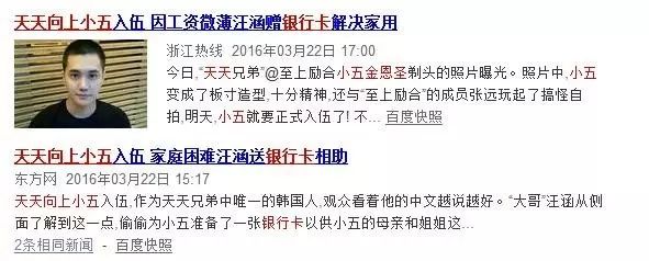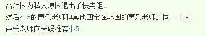 不过也正是因为去当练习生,才成为了至上励合的成员。那时候天娱要推出一个“快男五人组”的组合,后来某一成员因为私人原因退出了,恰好其他四位成员在韩国培训时的声乐老师也是小五的老师,就推荐了小五,但是能够被选中也说明了小五具备了很强的实力。