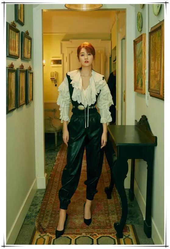 乔欣这次美绝了,上身白色的波西米亚风的雪纺衫,外边穿着紧身的黑色夹克,下身宽松的黑色皮裤黑色高跟鞋,这样搭起来,优雅又帅气。