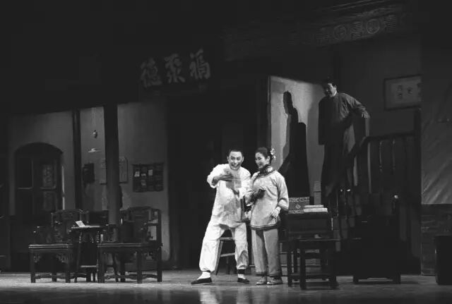 这是刚才我送给静安区政府的作品,北京人艺经典剧目《茶馆》。当时我正在开始学摄影,三年也就看了六部剧,这是其中一部。当时听说这些老艺术家将最后一次登台演出,我就赶紧去了。那是1989年,票价5块5,而且位置非常好。这个戏我就可以回答刚才的问题,我当时带着两台相机,但是只拍了二十多张照片,我就一直想不明白,只有一个可能——当时我已经顾不上拍照了,光顾着看剧了。