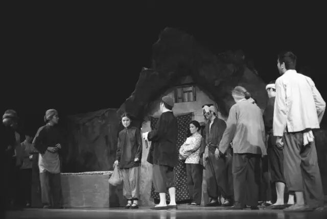 这是中戏的一个表演干修班的毕业大戏《桑树坪纪事》,女演员叫丛珊,这个班里还有很多著名演员,比如王奎荣,他当过中国儿艺的院长。这部剧是徐晓钟老师导的,被誉为中国当代现实主义浪漫诗剧,它运用诗化的、流动性的舞台呈现方式。