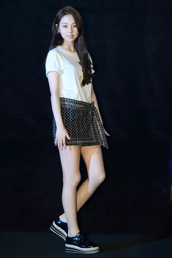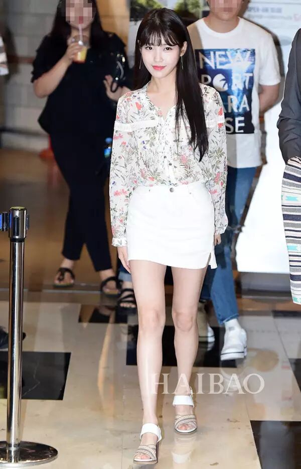 很巧的是,同款半裙现役Wonder Girls组合成员宣美也穿过,她采取了上下一套的搭配方式
