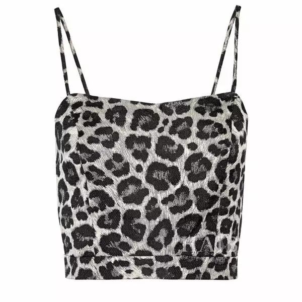之后,她又换了件露胃豹纹吊带上衣外加牛仔外套,配的还是Nina Ricci的开衩裙,强调狂野率性!