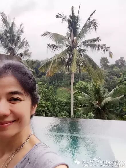 偶尔自拍,根本不施粉黛,也不介意露出鱼尾纹。