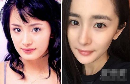 杨幂天生眼睛又大又圆,不过眼距有点宽,杨幂今昔对比照似乎眼距变小了,双眼皮也更深了,眼睛更接近勾人的桃花眼,就连脸型也变小了。