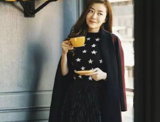 一身黑衣的熊黛林看起来非常的端庄优雅,明星范儿十足,星星图案的波点内搭很好的勾勒出熊黛林姣好的身材,披上暗紫色的大衣更是气场十足,收腰的半身裙很好的展现出熊黛林纤细的腰身,更显熊黛林的身材高挑。