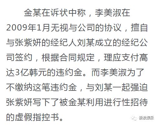 她和张紫妍之前是同一个公司的,那会李美淑想跳槽,正在和公司打官司,为了顺利解约,这位老姐姐就把张紫妍拖下了水。