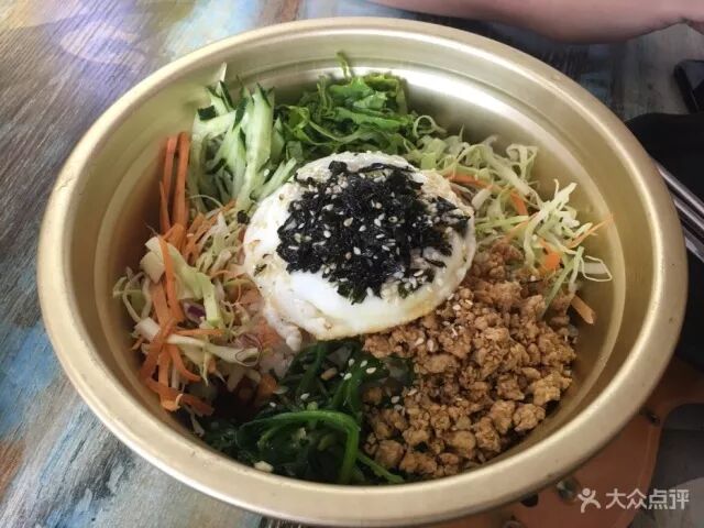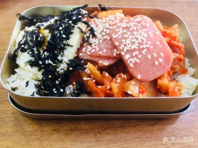 特有的辣酱,荤素搭配合理的小菜以及香软可口的米饭,三者配在一起舀上满满一勺,再加上海苔的咸甜、芝麻的香脆,甚是满足。