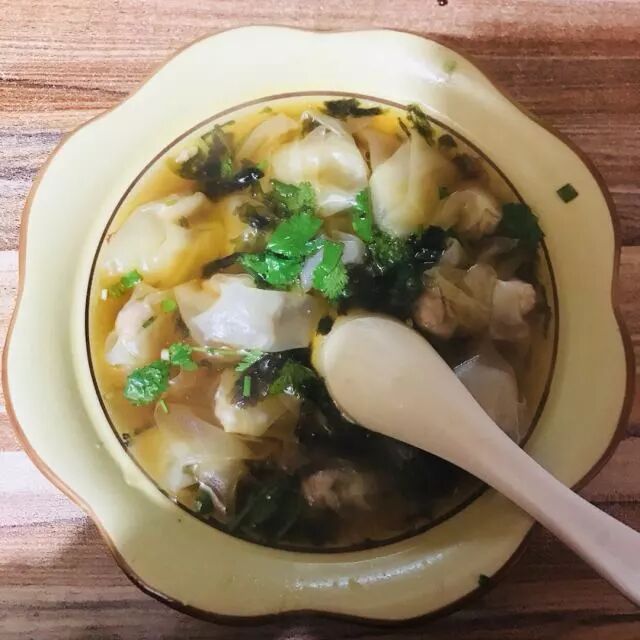 现包的小馄饨皮薄肉瘦,口感不腻,肉馅有着丝缕颗粒的细密口感。煮熟后隔着半透明的皮,加上虾干、葱、香菜和紫菜,再兑一勺醋半勺辣椒,典型的江南馄饨口味。很冷很冷的时候去那里吃一碗小馄饨就很有家的感觉,很暖很贴心。