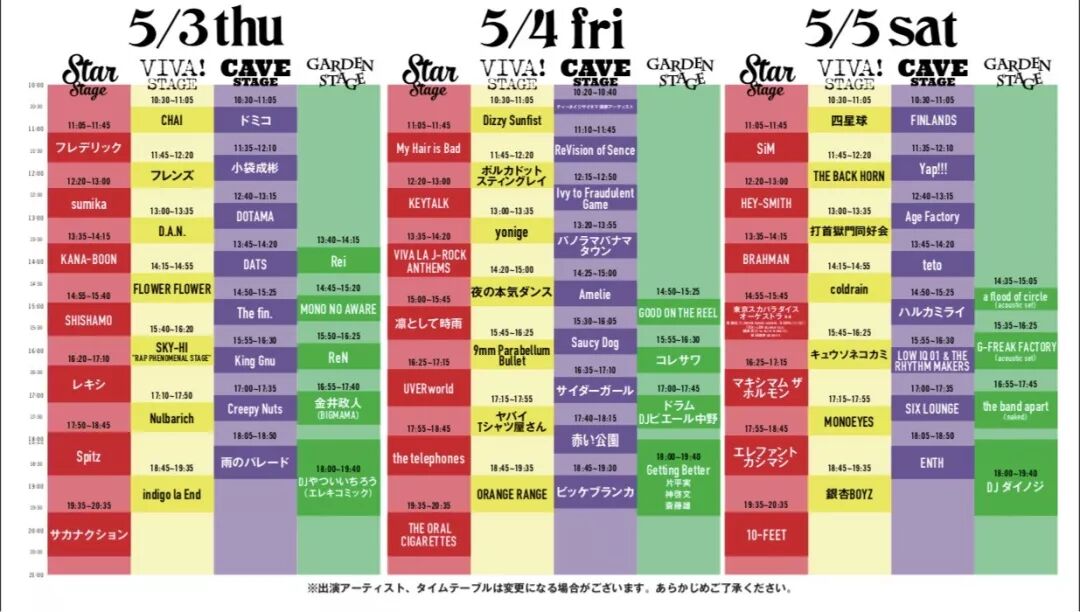 阵容:フレデリック、CHAI、小袋成彬、ドミコ、sumika等