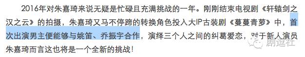 而且,现在还有通稿写的就是“朱嘉琦首次出演男主”,所以真的是隐形男主的节奏吗?