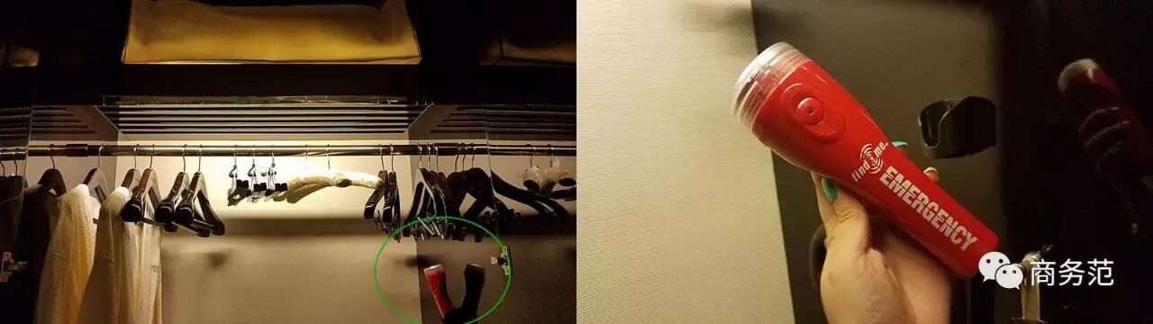 一般酒店也就几个衣架,而半岛柜子里放了十来个衣架,各种形状的都有,连衣裙、外套、衬衫等等都能放下。最上面有一床被子,柜子下方还有一个便携式手电筒、雨伞、鞋刷等等生活小物。