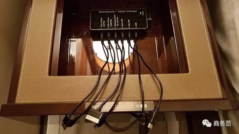 然而看到这些充电线的时候,范主实在觉得半岛太太太太人性化了!iPad或iPhone的充电线包括30PIN和Lightning两种,还有安卓充电线和各种大小的USB,连线都不用自己准备了,iPhone4和iPad4一起充电都没问题。