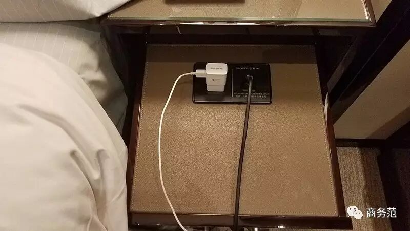 除了床上用品十分舒适以外。床头的设计,简直让人更加可以在床上做任何事情。两边的床头柜一拉开,首先是充电插口,满足了在床上抱着电脑码字、玩手机等基本需求~