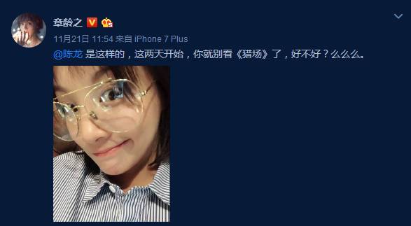 最近《猎场》正在热播,陈龙的好兄弟胡歌和陈龙的老婆章龄之即将有亲密的戏份上演。章龄之怕老公吃醋,希望他转台别看这剧。