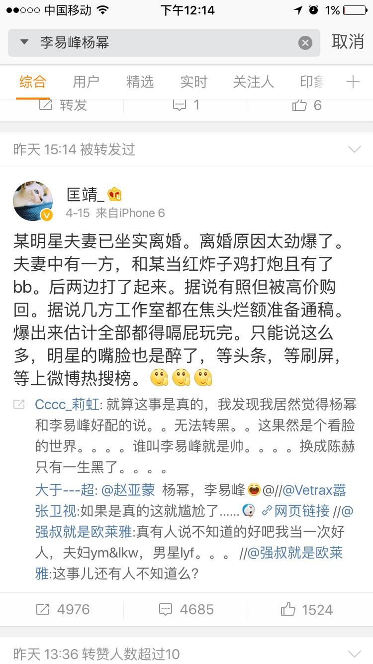 作为贵圈旁观者,哥跟广大美少女说一句,看贵圈真相,坐等当事人承认。咱们还是旁观的好!不要轻信网络传闻哈!套路玩得深,谁把谁当真呢!到底真相如何,估计只有当事人知道,不过哥觉得凡事不会空穴来风的哈!