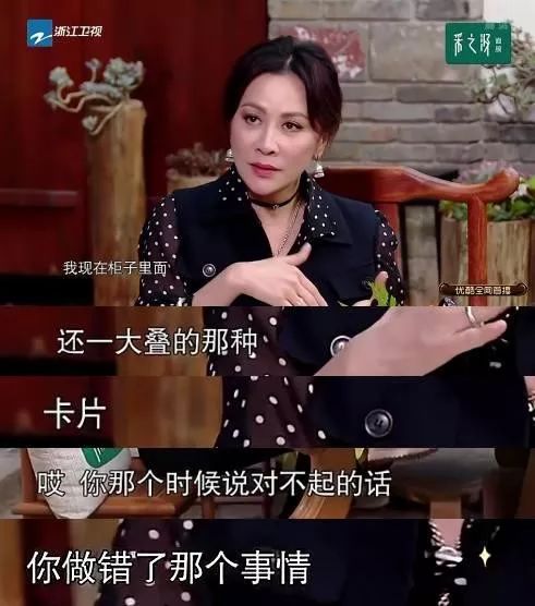现在她的柜子里,还留有梁朝伟曾写给她的道歉卡片,她会时不时地拿出来调侃梁朝伟:“你那个时候说对不起的话,你做错了那个事情。”